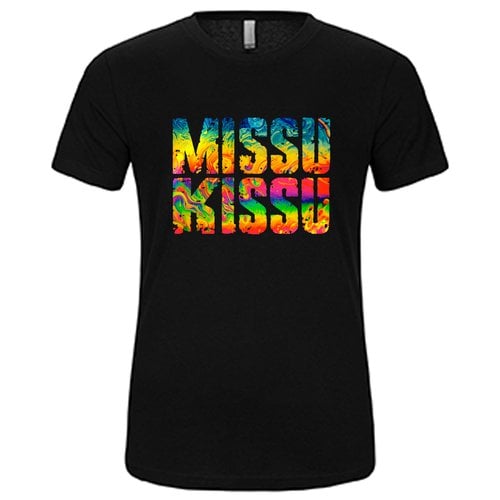 MISSU KISSU Logo on black T Shirt. 100% Cotton Black T Shirt
